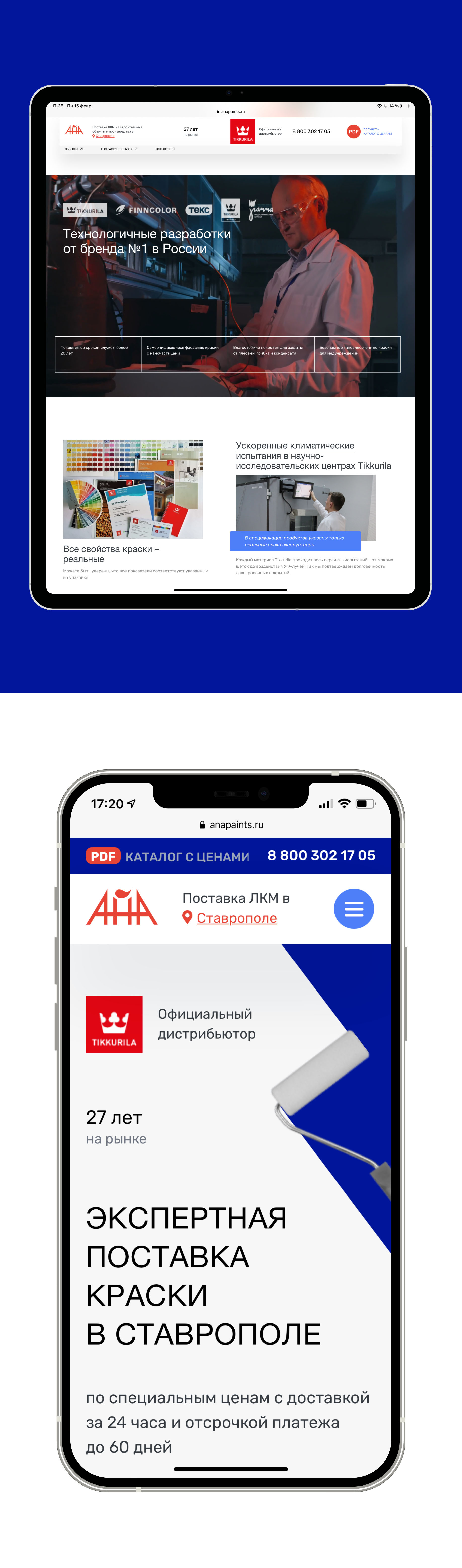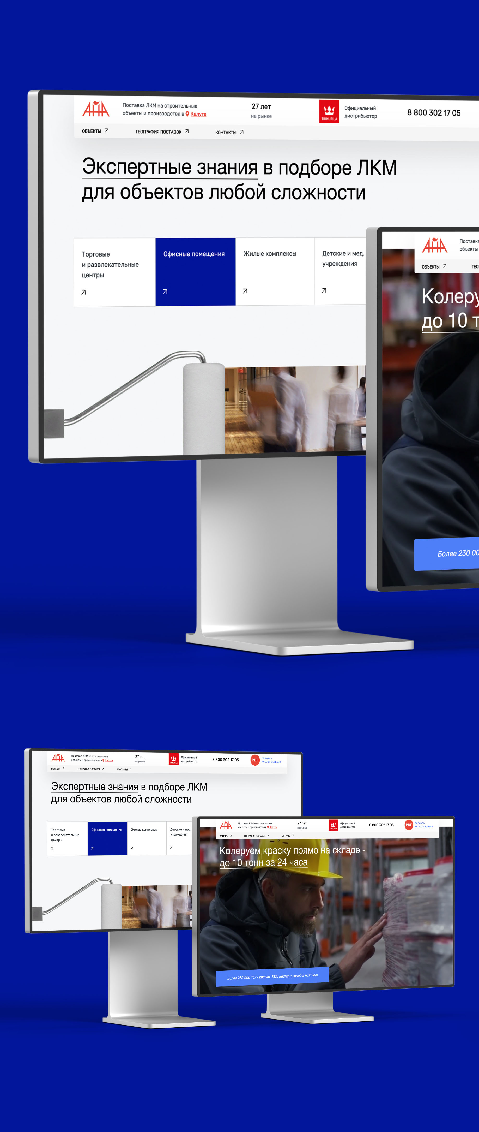 Разработали сайт компании, осуществляющей оптовые поставки лакокрасочной продукции на строительные и промышленные объекты. Сумели вытянуть огромное количество смыслов, показать высокую экспертность и существенно поднять конверсию сайта.